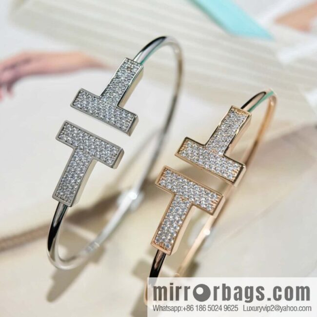 ❗️CNC version❗️ ☀️Delivery pictures Full set of genuine Tiffany packaging ☀️Tiffany & co Tiffany, Classic Wide T Series, Full Diamond Silver Rose Gold Double T Bracelet ☀️V gold material, electroplated double-layer thick gold ☀️Opening design, regardless of size