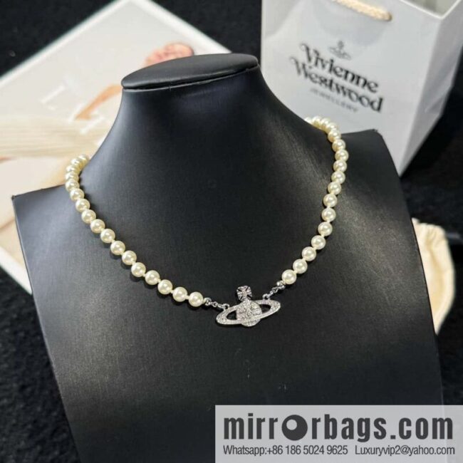 ❗️new product❗️ New ☑️ Vivienne Westwood Queen Mother Pin Full of Diamonds Saturn Pearl Necklace [Gift Box] A full set of VW original packaging [Craft] The original order level is handmade, and the engraving is complete. [Material] V gold material
