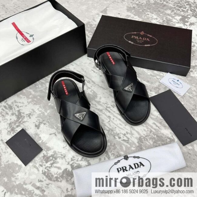 ๐๐P’s new product PRAD */Prad-da, the new men’s cross-style Velcro sandals, this sandal adopts the design of cross-lace, and the heel is adjusted by Velcro. It is made of smooth calfskin/fabric leather splicing, and the design is elegant and exquisite. The front is decorated with the classic Prad * triangular metal enamel logo decoration, and the prad * letter red label embellishes the insole, interpreting the brand style. The upper thread decorates the calfskin insole, with the concave and convex brand logo rubber outsole, showing the ingenuity craftsmanship and classic style. The upper foot is very comfortable and foreign style. It comes with a full set of original box packaging!!!