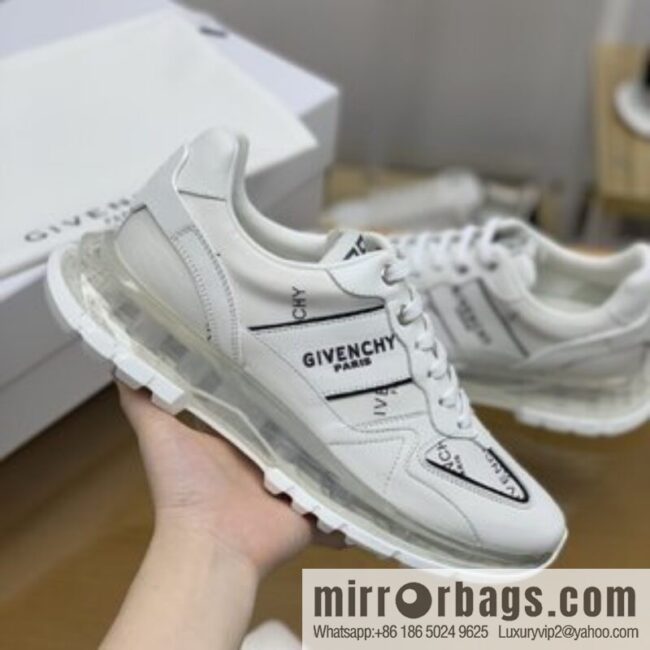 🔥Men’s low-top jogging sneakers ; made of white leather cloth material, tongue embellishment 4G LOGO embroidery, side decoration with white letters printed ; Vintage design, light and transparent and white technology outsole. Size: 39-44