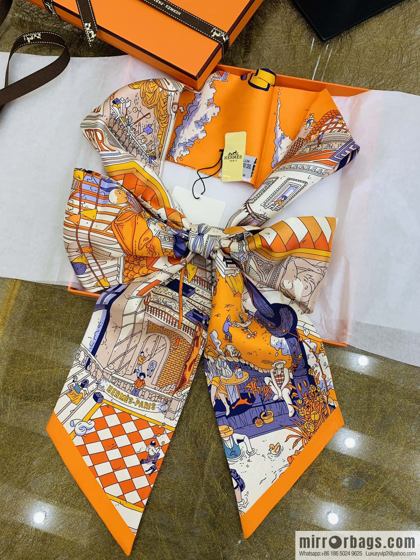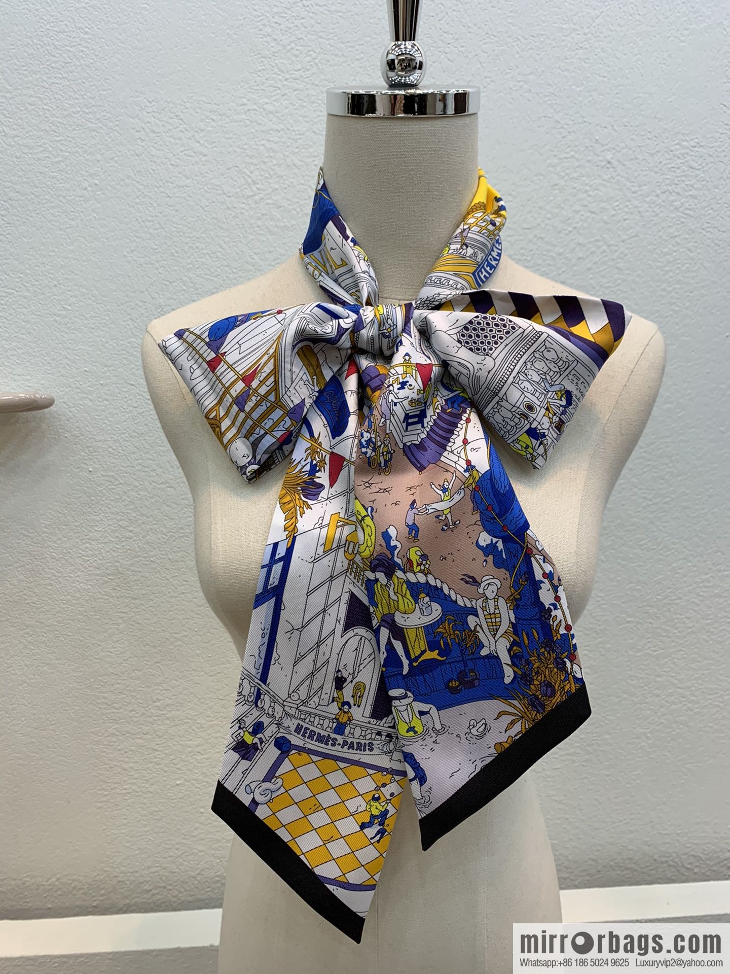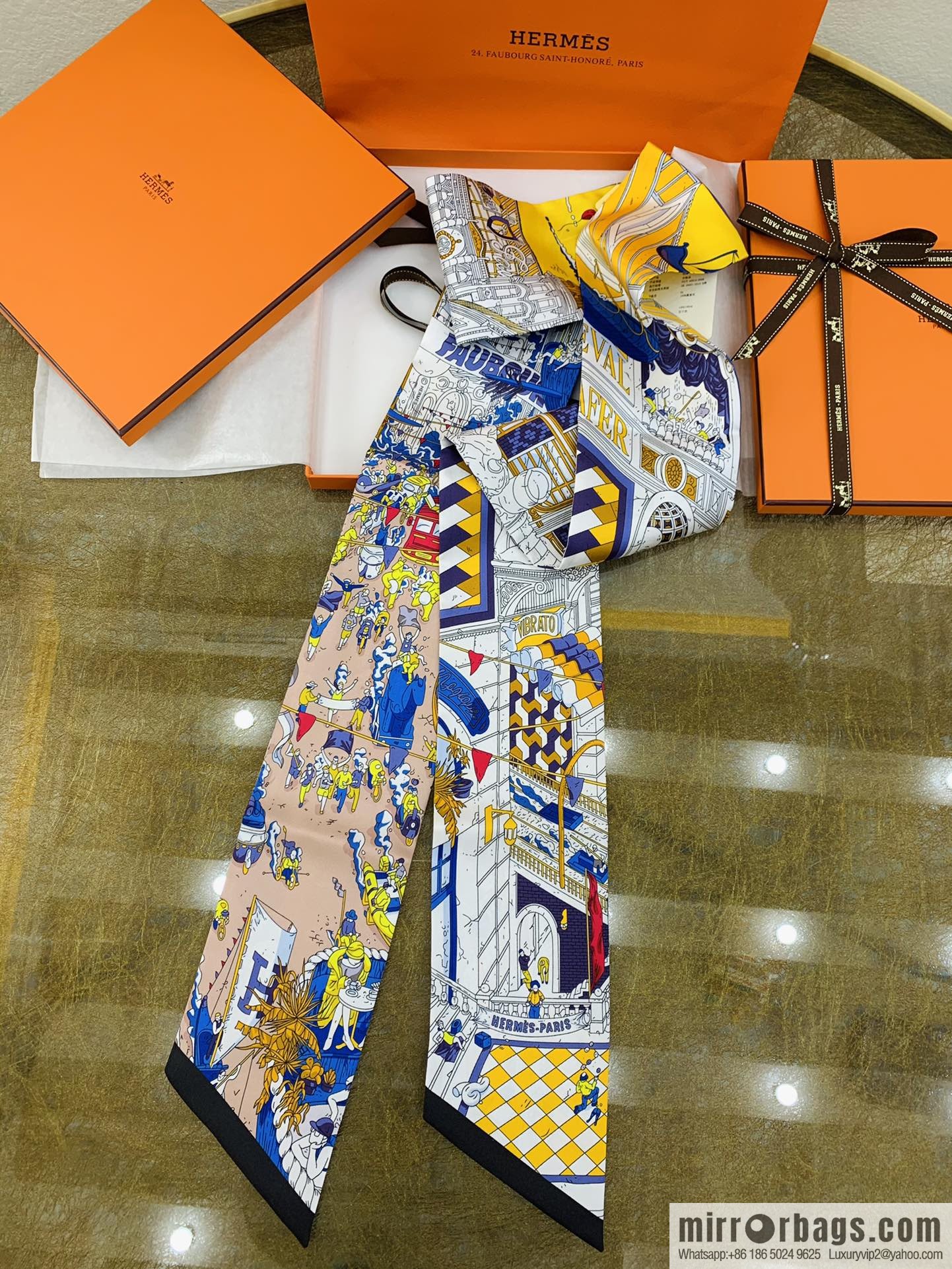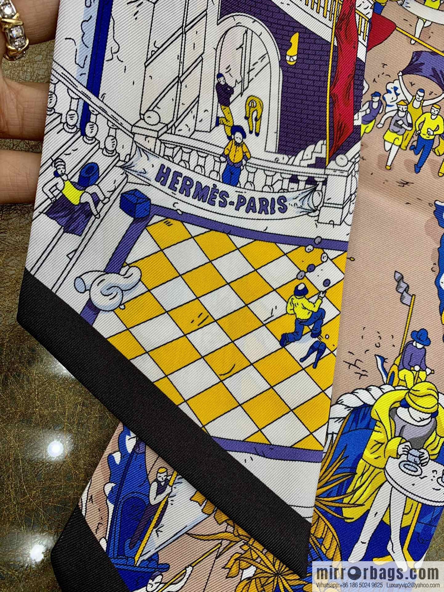 𝗛𝑒𝑟𝑚𝑒𝑠 original order 21 summer new Maxi Twilly “Fubao Grand Prix” • Small and exquisite. Very suitable for social trinkets! The long silk scarf has become slimmer and thinner, and more delicate. The size is moderate, and can be worn as a headscarf, belt or around the neck, etc… Material: 100% silk, size: 180x10cm with a full set of brick cabinets, super nice for gifts and personal use.