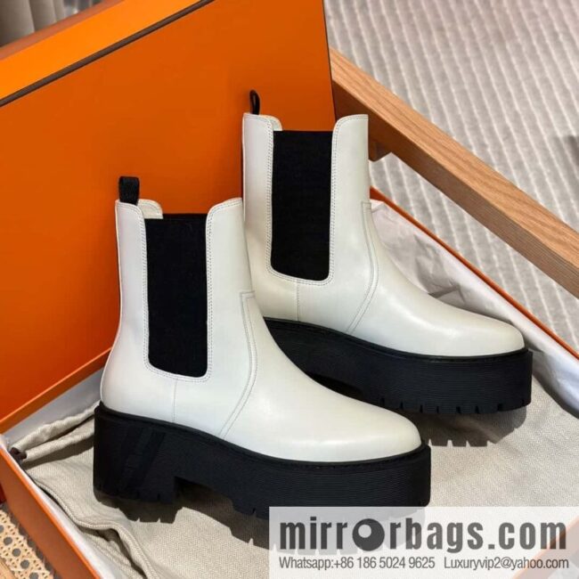 Calfskin and ankle boots with grooved soles and the iconic “H Cadenas” trim