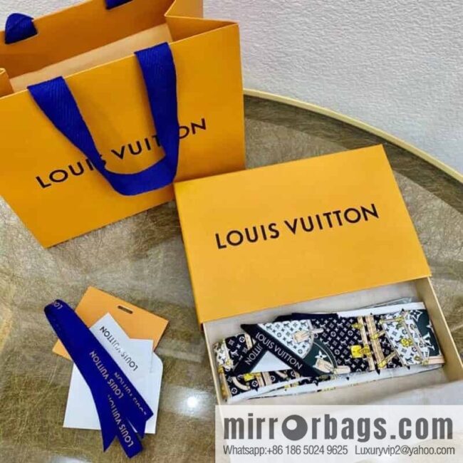 Original order m76442 #Monogram silk headband, leather jewelry and other classic element patterns, and then play with the layering of Monogram background, which can add gorgeous charm to any shape. Material: 100% silk, 120 x 5cm