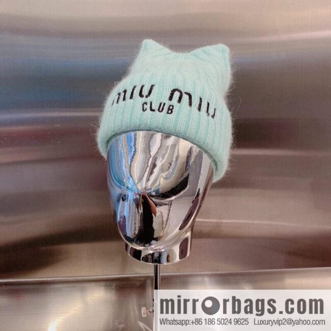 Miu Miumiu 2022 autumn and winter new knitted wool hat, cat ear wool hat, 50 wool% 50 rabbit hair, drive DNU multi-color Weight 1 lbs Style Beanie Hats