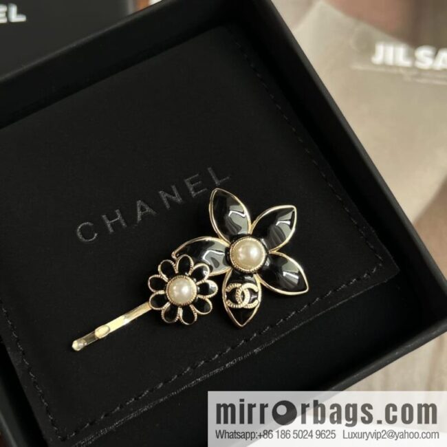 New model☑️CHANELChanel double c black flower hairpin hairpin