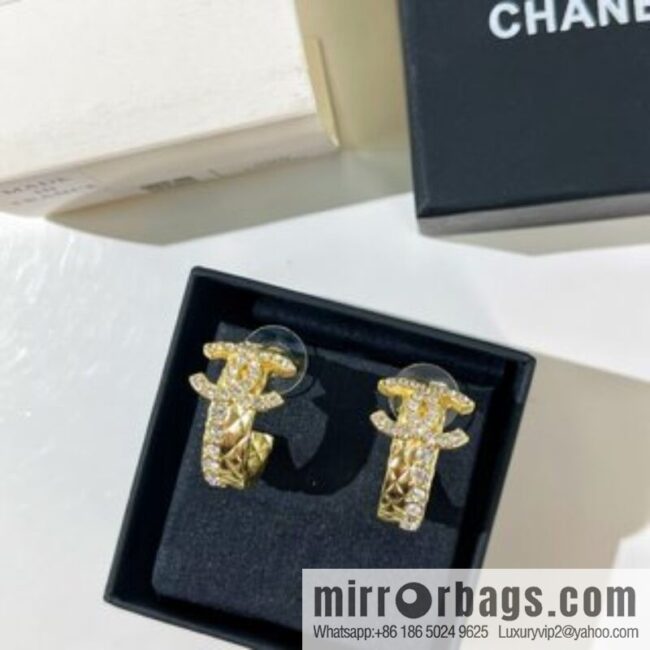 ❗️New ❗️ New☑️CHANELChanel full diamond double c diamond stud earrings [gift box] full set of CHANEL original packaging [process] original single-level manual, complete engraving [material] high-quality brass material [album search] Chanel c1 full diamond, double c diamond, stud earrings