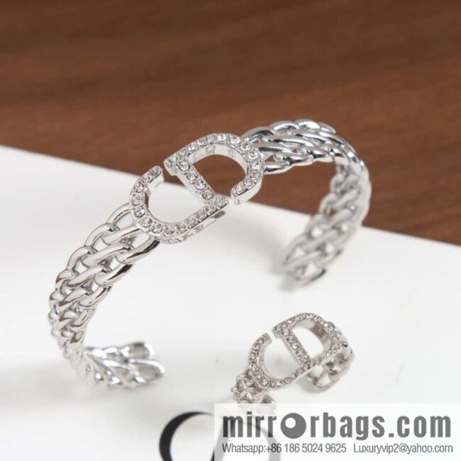 New model☑️DIORDior Silver CD Full Diamond Open Bracelet, Ring