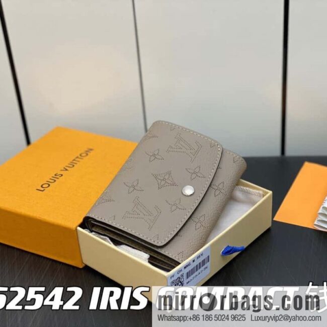 [Boutique‑grade] M62542 grey, full leather flip wallet series IRIS COMPACT wallet, made of Louis Vuitton’s unique AmsMonogram perforated soft perforated perforated leather (fabric), this small wallet can be easily stored in any handbag. Open the arc flip to reveal the functional structure of the compartments, including credit card slots and zipper change compartments. Dimensions: 12 x 9.5 x 3 cm