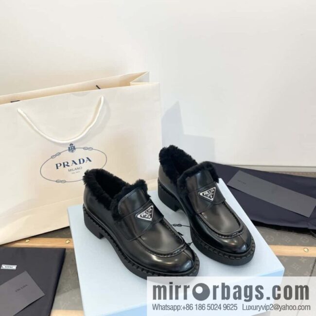 purchasing agent level 𝐏𝐑*𝐃𝐀||𝟐𝟎𝟐𝟑 autumn and winter triangle standard wool fleece platform loafers‼️ [Big factory top high-end quality] Plush soft fufu is pure and fashionable~ very warm~ handsome, fashionable and foreign~ 4.5cm thick bottom is not bulky at all~ small beautiful woman gospel ❤️~ trousers, short skirts, long socks are very versatile~ The upper feet will not be bloated at all~ Beauty and warmth coexist~ Minutes, elongate, body ratio~ Super thin and long legs ✈ upper: imported calf beads ✈ Lining/Feet: Lamb wool ✈ Outsole: Exclusive Original 1:1 Custom TPU ➕ Rubber Ultra Light Foam Outsole ⚠️Difference between market currency~ high quality is completely different‼️ ✈: 35, 36, 37, 38, 39 [Small size]