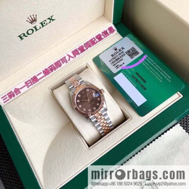 Rolex Rolex women’s oyster log watch! The hottest pink literal dial of the year, inlaid with 10 Vs-level natural real diamond hour markers! Each watch has a real diamond certificate issued by China’s GTC authority! The dial size is 31 mm. It is forged with 904L stainless steel 18k gold plating and has high corrosion resistance. With Rolex custom version 2236 blue hairspring automatic mechanical movement, the performance is extremely stable. It has strong shock resistance and geometric structure so that the movement can maintain stable operation in any position. The triangular pit bottom cover is tightened with special tools to make the case completely sealed. The winding crown adopts a double-lock double waterproof system, which is firmly tightened to the case, making it more waterproof. The mirror surface is made of sapphire material with high wear resistance. It is equipped with a small window convex lens (2.5 times) at 3 o’clock. The waterproof oyster case of the women’s log type gives the best protection for the high-precision movement! The new double-headed connection method under the 904L watch strap and the outer ring, the concealed stacked crown buckle, opens with the articulated Rolex crown logo. The 6-character inner film ring is corroded by the process of one watch and one yard. Never repeat. Look for exclusive quality