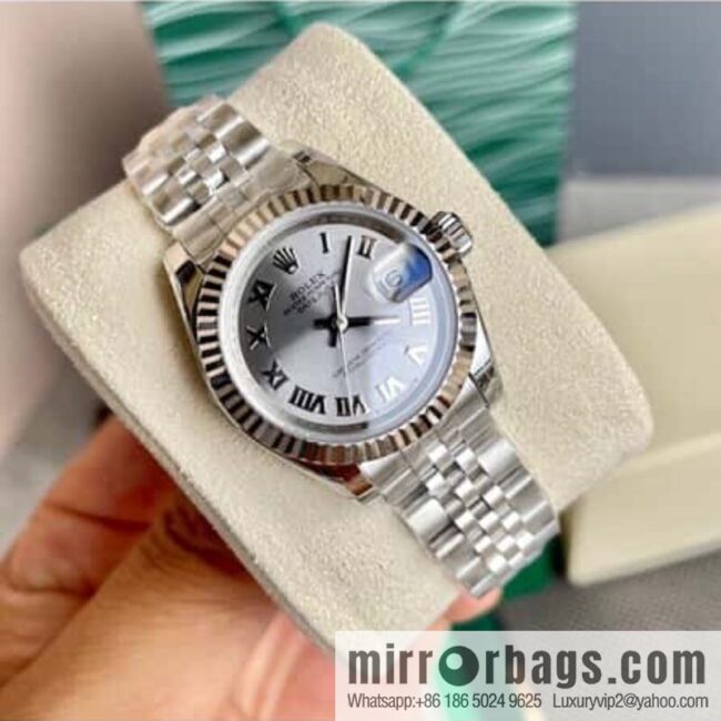 Rolex Rolex women’s oyster log watch! The case is 28 mm straight. Forged with 904L stainless steel, it has high corrosion resistance. With the 2671 fully automatic mechanical movement, the performance is extremely stable, with strong shock resistance and geometric structure, the movement can maintain stable operation in any position. The triangular pit bottom cover is tightened with special tools to make the case completely sealed. The winding crown adopts a double-lock double waterproof system, which is firmly tightened to the case, making it more waterproof. The mirror surface is made of high-wear-resistant sapphire material, and the small window convex lens (2.5 times) is equipped at 3 o’clock. The waterproof oyster case of the women’s log type gives the best protection for the high-precision movement! 904L watch strap and the new double-headed connection method under the outer ring, concealed stacked crown buckle, opened with the articulated Rolex crown logo. The 6-character inner shadow ring is corroded by the process of one watch and one size. Never repeat. Look for exclusive quality
