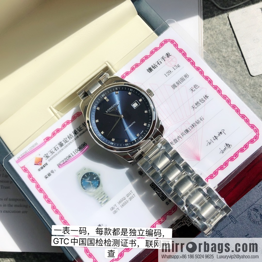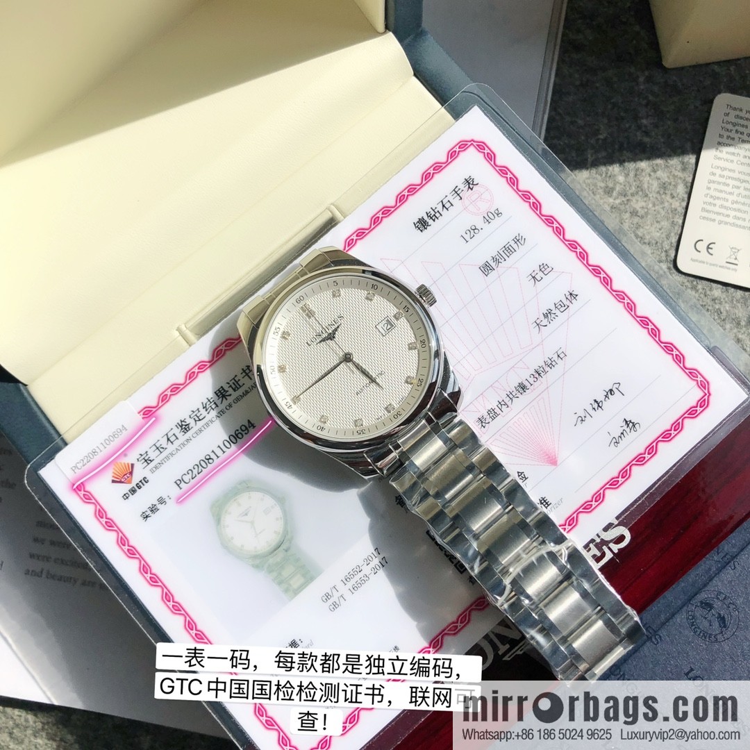 Top cattle! Longines “real diamond model from famous craftsman” is original, a century-old classic, and the ultra-thin design style presents the complete minimalist quality on the wearer’s wrist. The watch diameter is 40mm, the silver tri-fold safety clasp and press-type opening device, the “back-penetrating” Swiss automatic mechanical movement, the movement is clear at a glance! The waterproof depth is 30 meters, the lug spacing is 21mm, and the dial is silver “wheat grain”. It is inlaid with 13 high-grade Wesselton VS-Sl diamonds with a total weight of 0.059 carats. Each diamond watch is equipped with a diamond certificate issued by China’s GTC authoritative certification agency to ensure that each one is a real diamond. The test number of each certificate is a unique number and will never be repeated. Scan it on the official website of the agency! Silver-plated polished hands, wear-resistant synthetic sapphire glass mirror, embellished with elegant diamond digital hour markers, echoing the simple and beautiful central blue steel big three needles, making the time clear and intuitive. The movement adopts the highest grade fully automatic mechanical movement certified by the Swiss SW200 Observatory, and the original accessories of the foundry channel. The strap, clasp and case are all made of 316 stainless steel, the standard designated by the Swiss foundry, which is super wear-resistant and corrosion-resistant! 🥰 The English digital information of the super clear bottom cover, the color of the hands and the length of the process technology can be seen